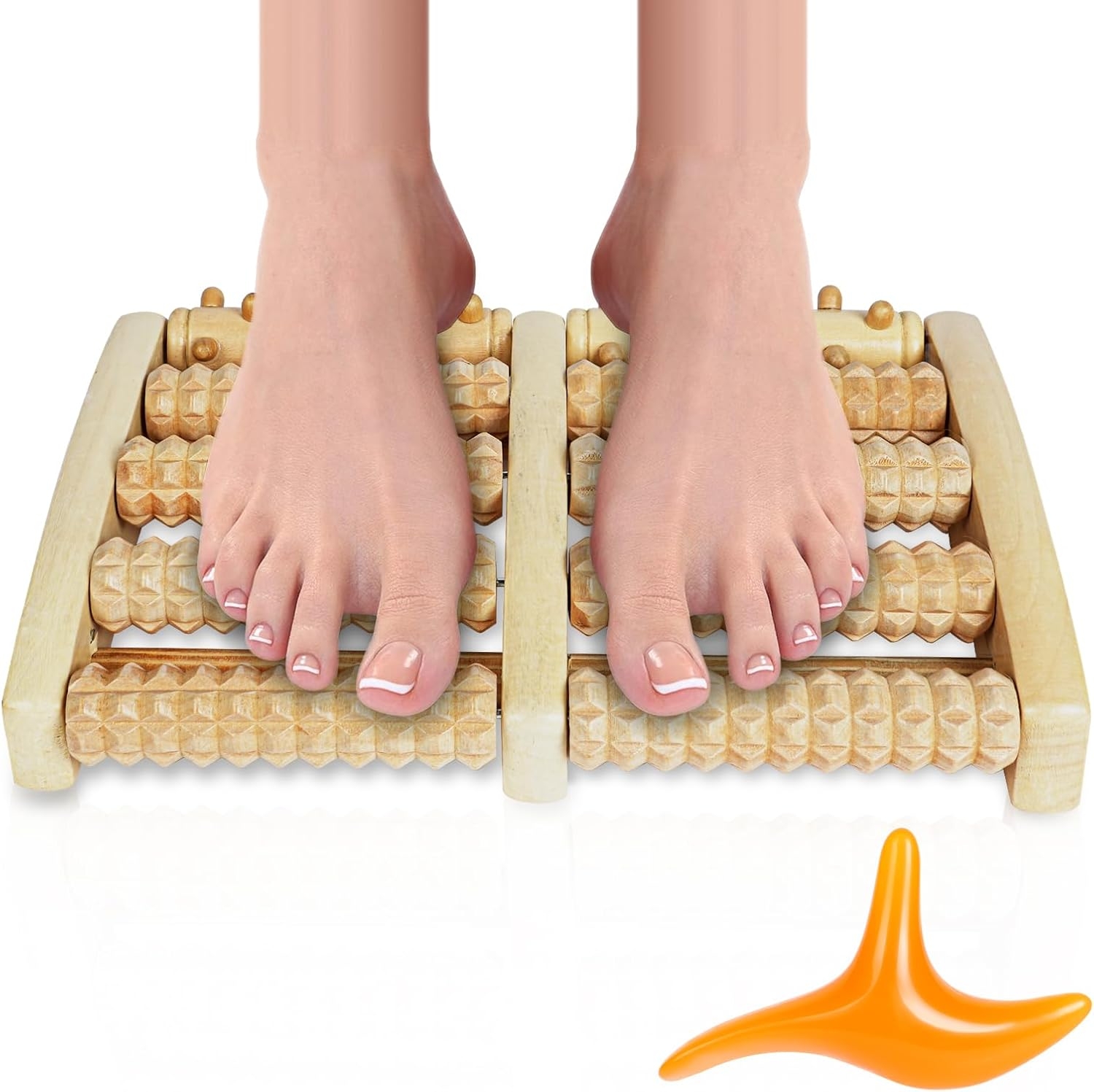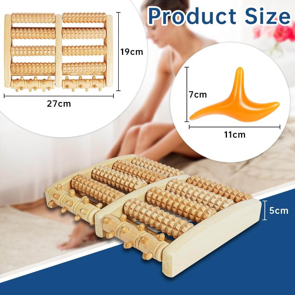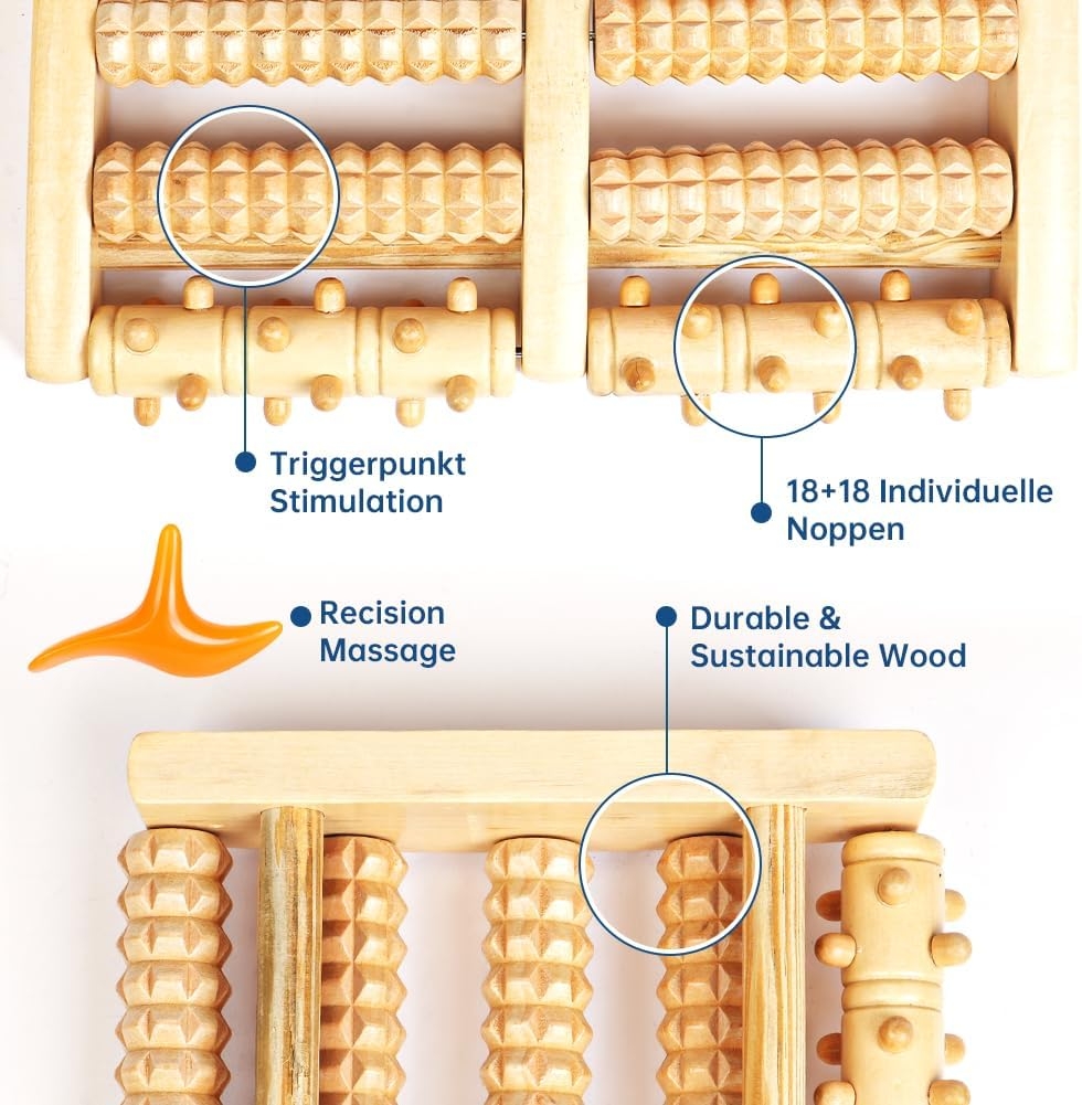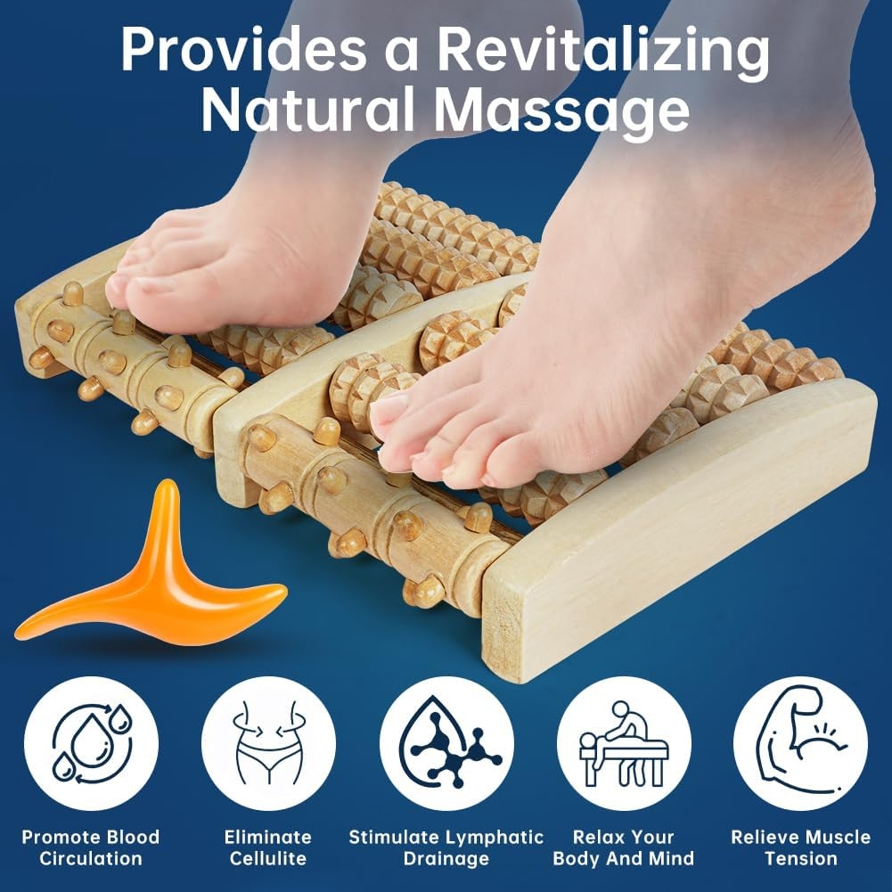 Drewniany masażer do stóp z podwójnym wałkiem do masażu