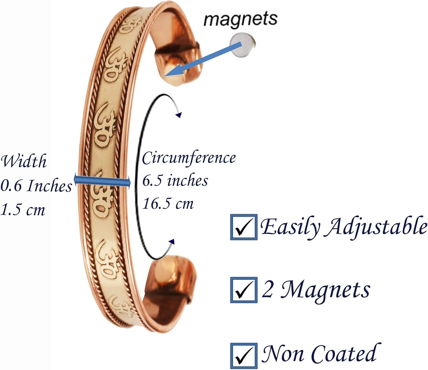 • Miedziana bransoletka marki Touchstone przynosi różne korzyści zdrowotne, jest to bardzo uspokajający i pozytywny metal.