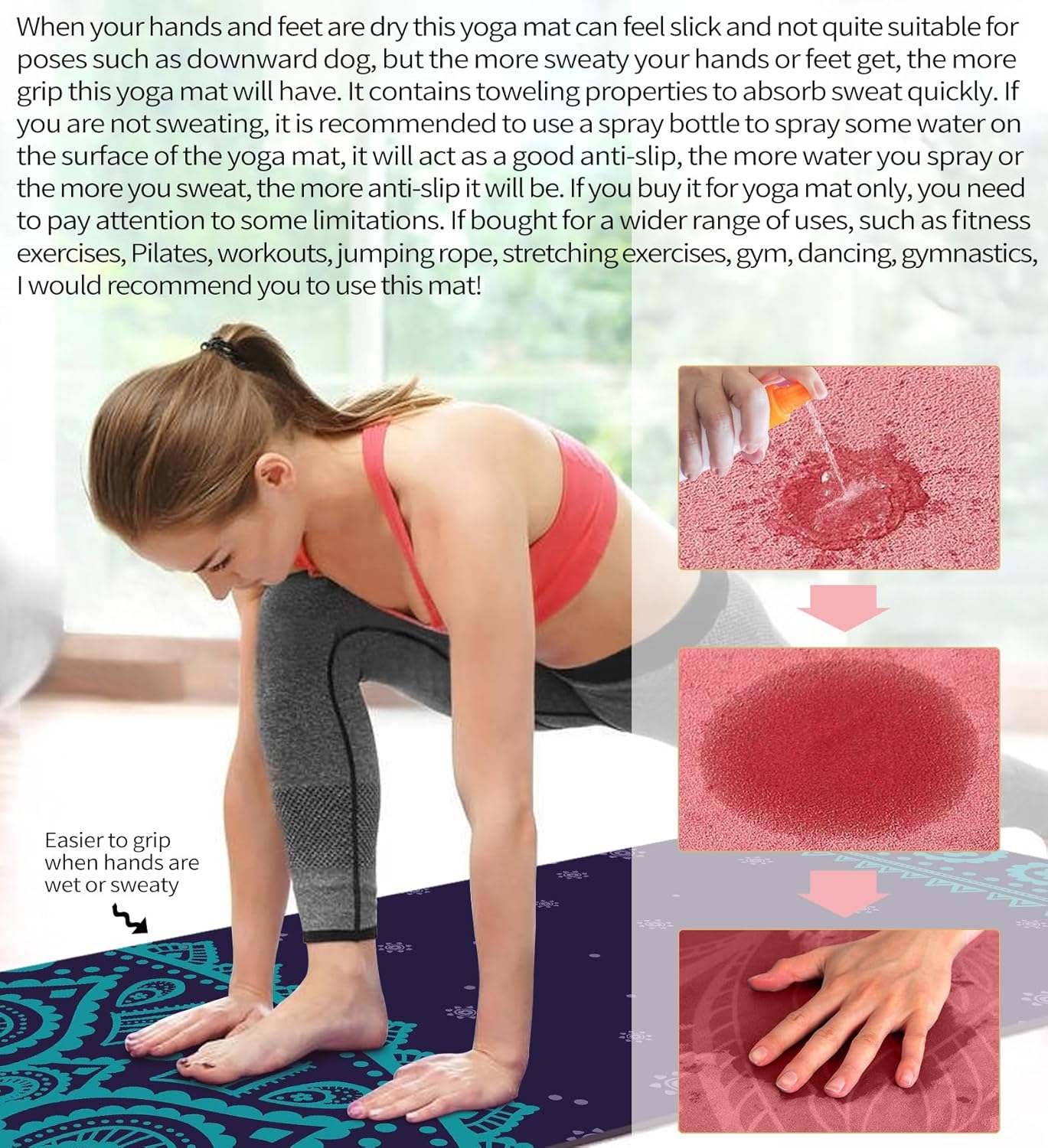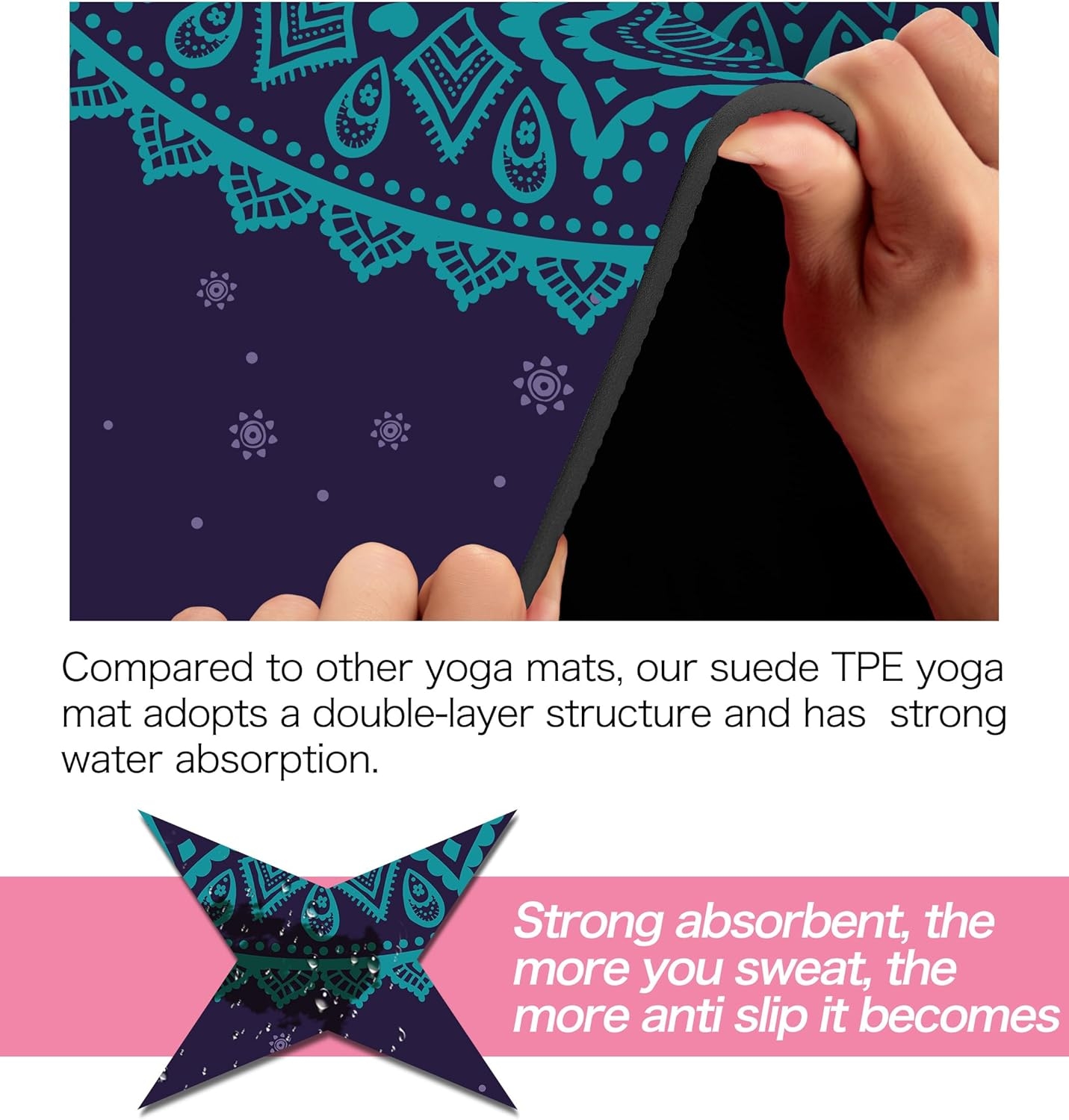 - 【Materiały przyjazne dla środowiska】: Przyjazne przypomnienie: nasza mata do jogi wykonana jest z miękkiego zamszu na powierzchni i wysokiej jakości TPE z tyłu. Cechą charakterystyczną zamszu jest to, że im więcej się pocisz, tym bardziej jest antypoślizgowa. Suche dłonie i stopy są bardzo gładkie i nie nadaje się dla psa skierowanego w dół. Im więcej wody masz na dłoniach lub stopach, tym silniejszy chwyt maty do jogi. Jeśli się nie pocisz, zaleca się używać puszki z rozpylaczem spryskać wodą powierzchnię maty do jogi, co będzie miało dobry efekt antypoślizgowy.