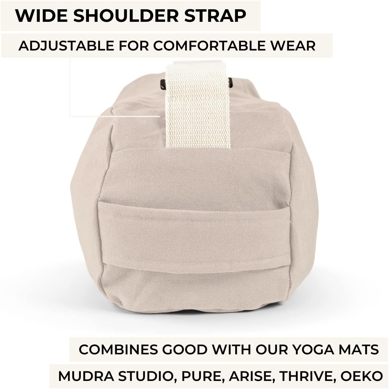 • Dużo miejsca na matę i akcesoria – torba do jogi zapewnia wystarczająco dużo miejsca na maty do jogi o szerokości do 65 cm, a także ręcznik do jogi, odzież do jogi i pasek do jogi. Z dodatkową kieszenią wewnętrzną na pieniądze, klucze i małe przedmioty.