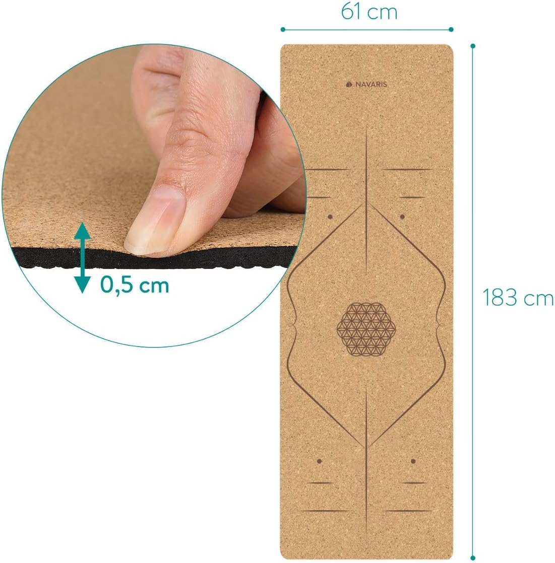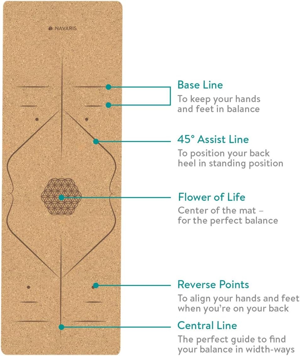 - NAMASTE: Mata do jogi z korka Navaris o grubości 5 mm pomaga poprawić stabilność i równowagę podczas ćwiczeń. Linie wyrównania są drukowane na macie, aby zapewnić wizualne przewodniki, aby prawidłowo wyśrodkować ciało i utrzymać Twoją praktykę asany w równości.