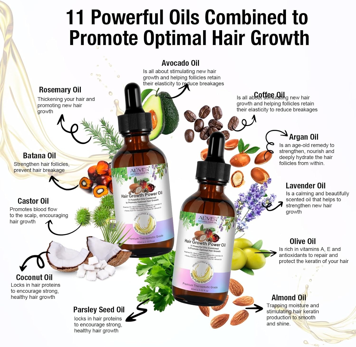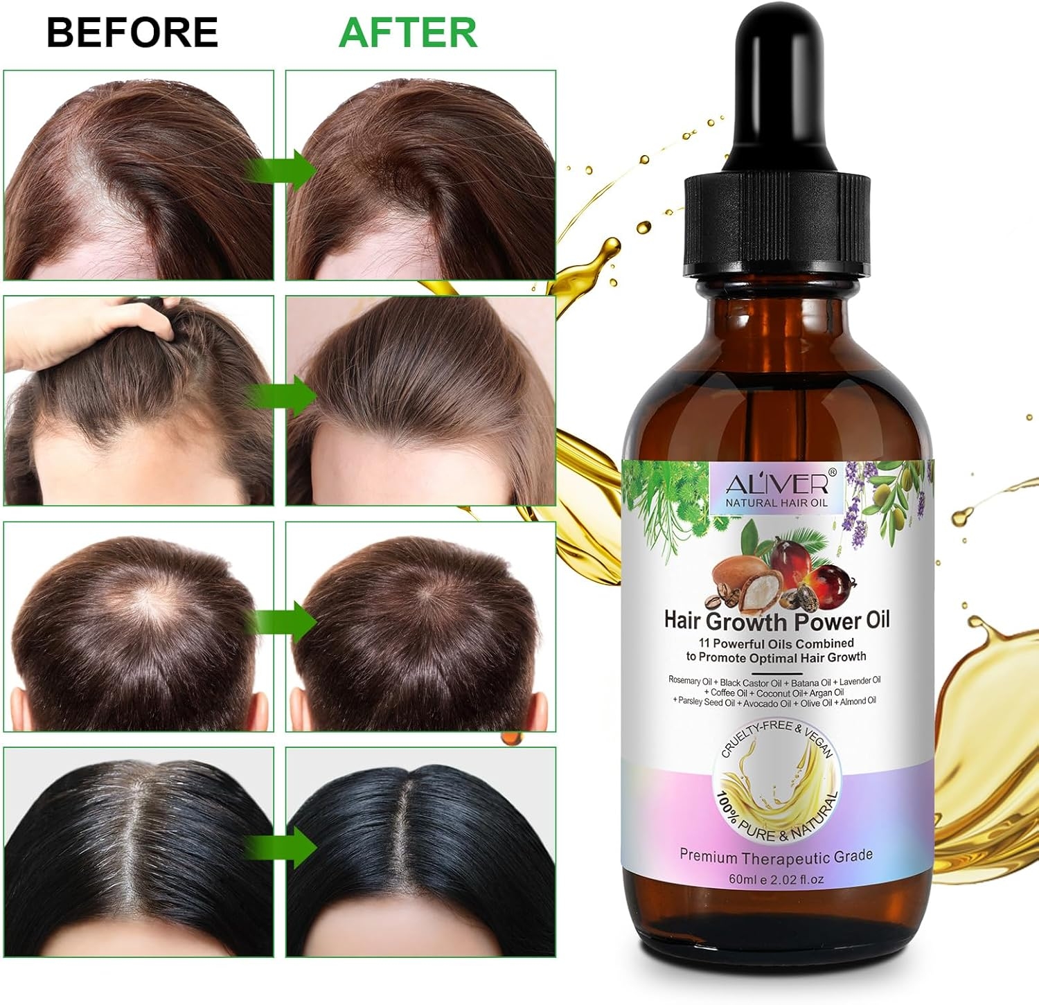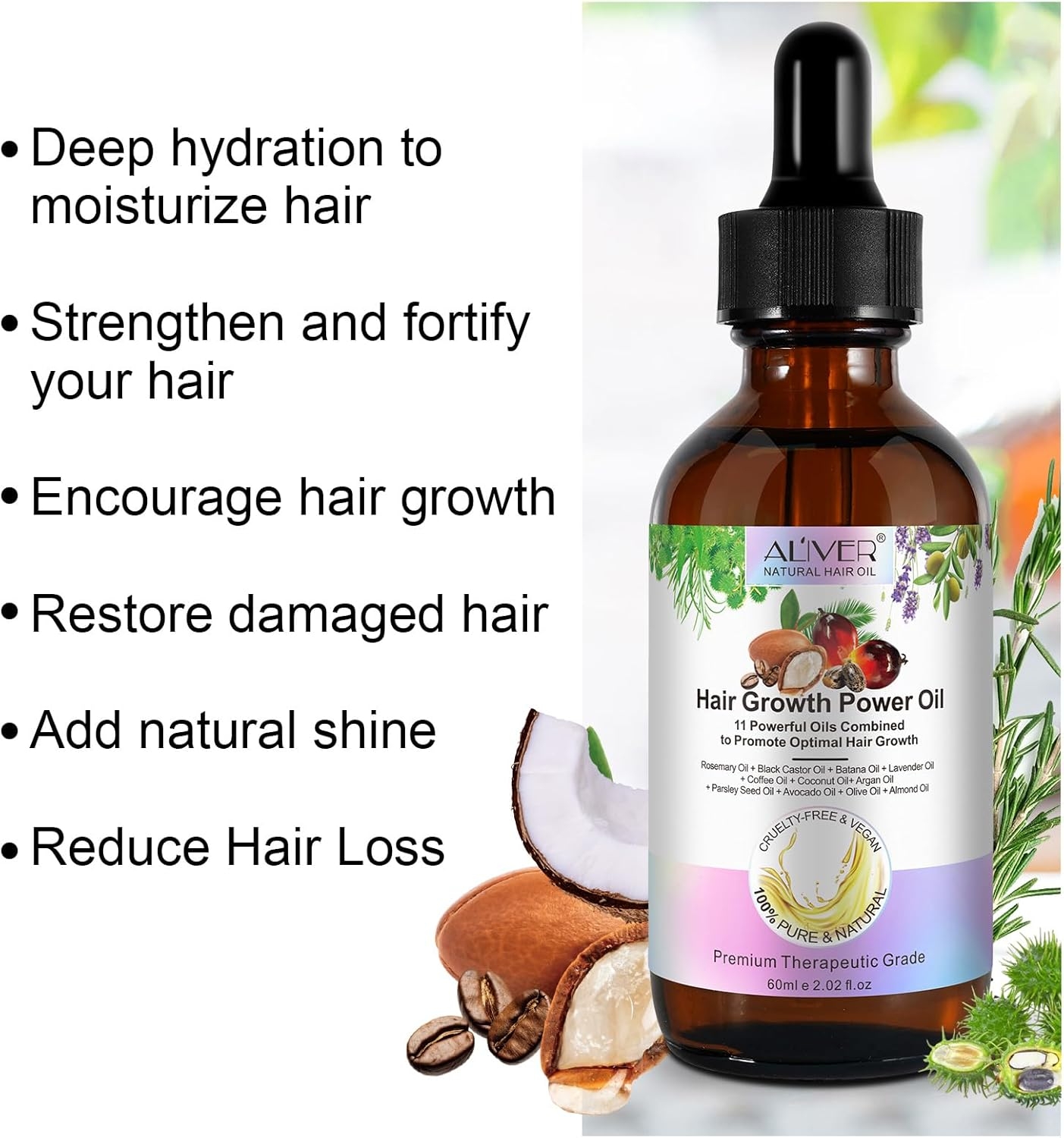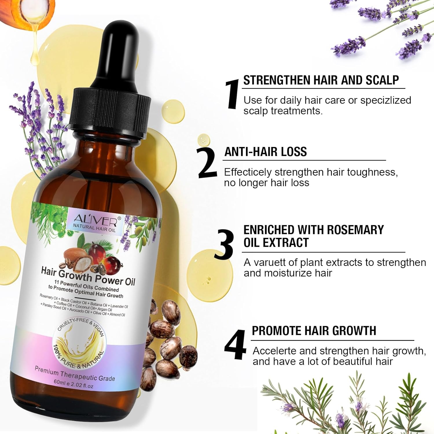 - 【100% ORGANICZNE, CZYSTE I NATURALNE】 Tłoczone na zimno. Zawiera 11 RODZAJÓW silnie działających olejków eterycznych na porost włosów, w tym olejek rozmarynowy, olej rycynowy, olej batana, olejek lawendowy, olej kawowy, olej kokosowy, olej arganowy, olej z nasion pietruszki, olej z awokado, oliwa z oliwek, olejek migdałowy. 100 czysty naturalny, nie zawiera żadnych substancji zapachowych i szkodliwych.