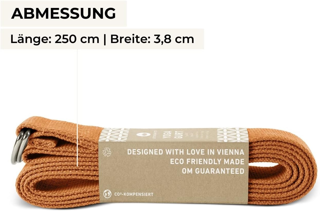 - Wspiera Twoją praktykę jogi – pasek do jogi należy do podstawowego wyposażenia, niezależnie od tego, czy jest to dla początkujących czy profesjonalistów jogi. Jest to sprawdzone narzędzie do jogi i może być stosowane na wiele sposobów. Nasz pasek do jogi ma 2,5 m długości i 3,8 cm szerokości.
