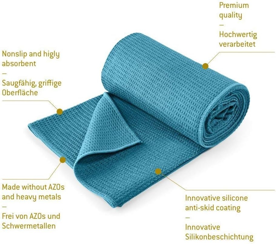- Najlepszy ręcznik do jogi – niezależnie od tego, czy jako podkładka pod matę do jogi, czy jako wyjątkowo lekka mata podróżna: nasz antypoślizgowy ręcznik do jogi może być używany uniwersalnie. Idealny do gorącej jogi, Vinyasa Flow lub jako ręcznik do pilatesu.