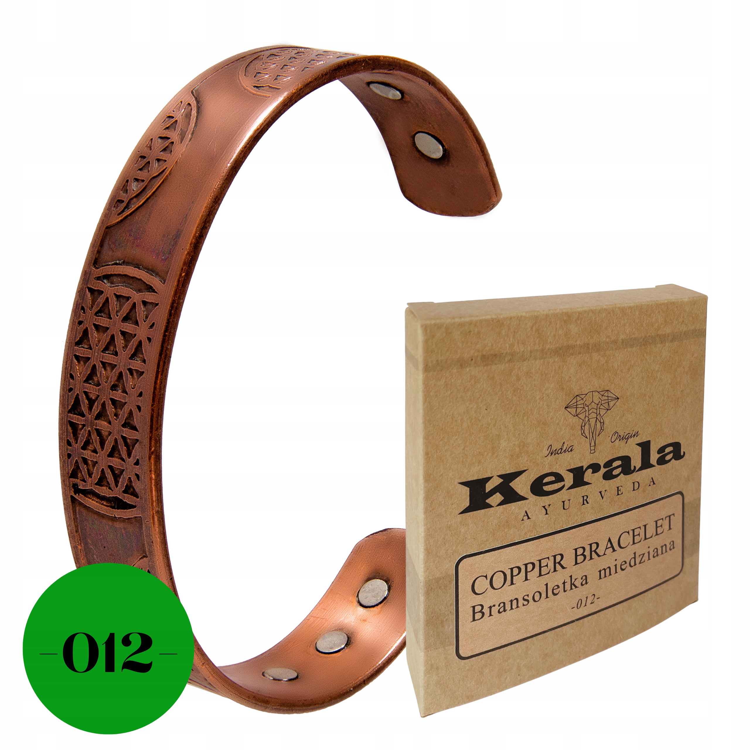 Wyroby marki KERALA pochodzą prosto z indyjskiej manufaktury, których jesteśmy bezpośrednim importerem. Nasza oferta obejmuje wyłącznie certyfikowane bransoletki i naczynia miedziane, które są wykonane ręcznie z pełnowartościowej 100% miedzi.